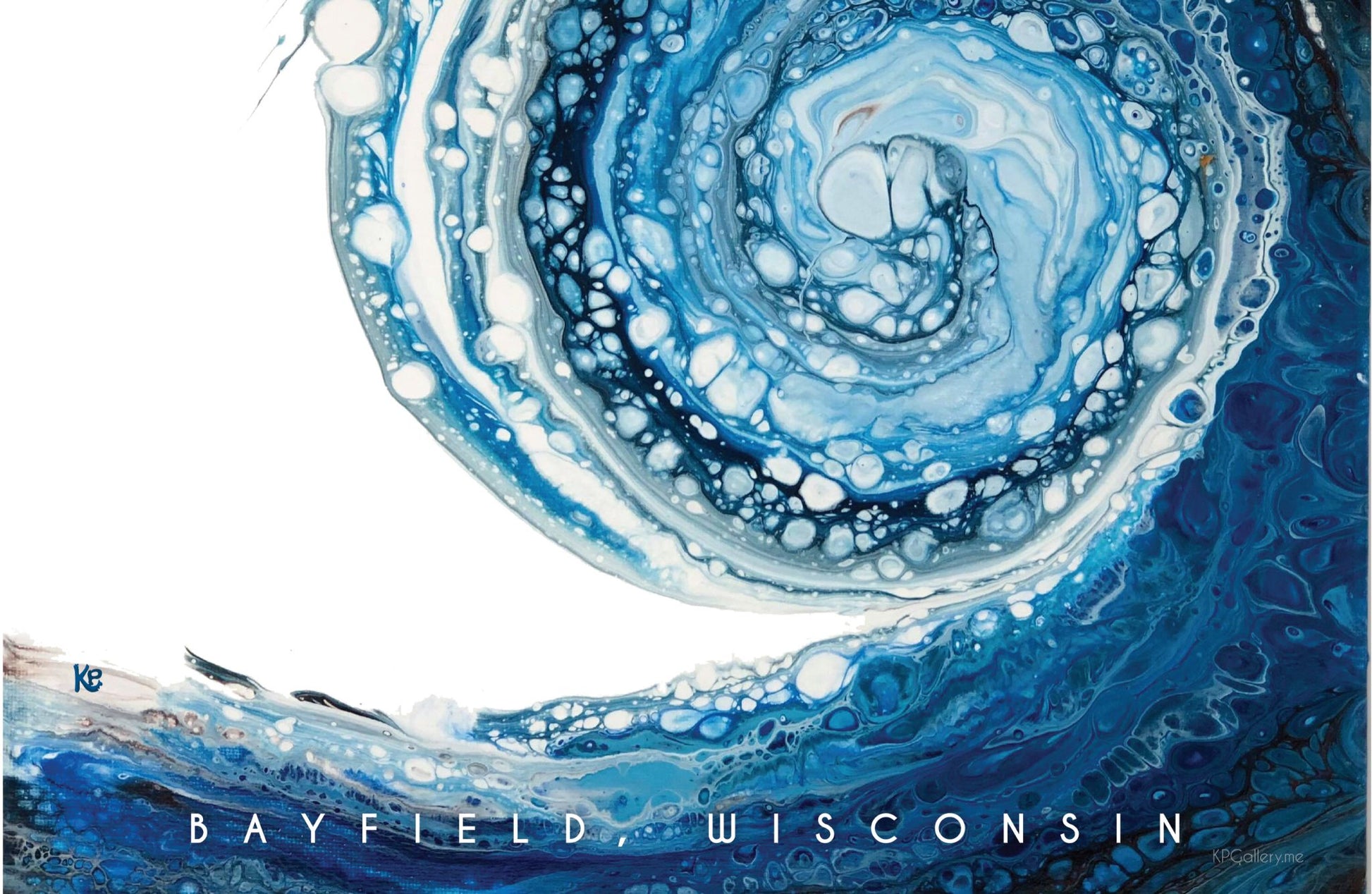 Wave Design Bayfield Text: "BAYFIELD, WISCONSIN" 11 x 17 Print. Comes packaged with print & sturdy chipboard inside a protective plastic sleeve.